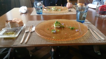テーブルの上にはchile wichのランチョンマットが置かれていて、次々運ばれてくるお皿と料理の色彩を邪魔しないように、うまく引き立てておりました^^。